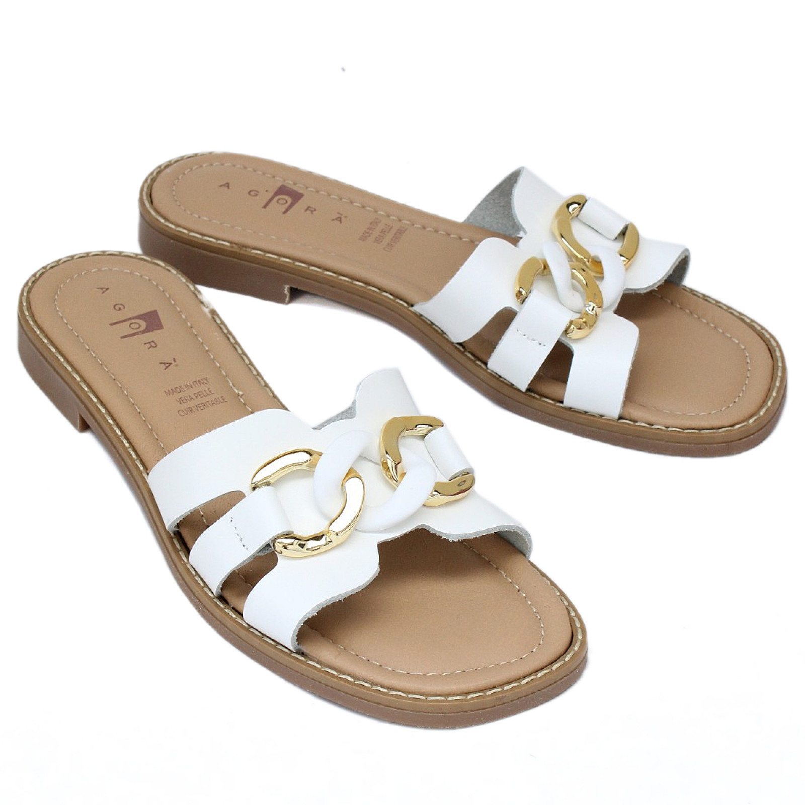 Agora by Patrizia női fixpántos bőr papucsEL27-BIANCO 07310 bemutatása