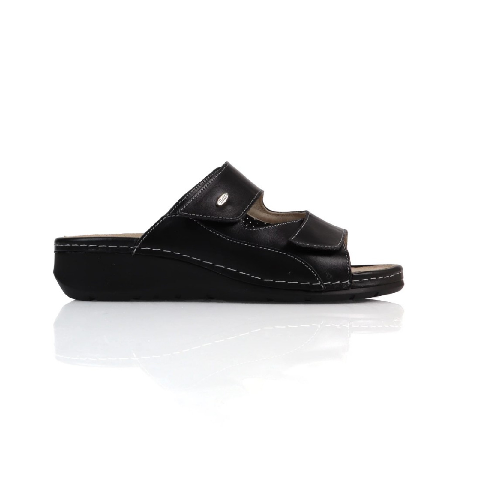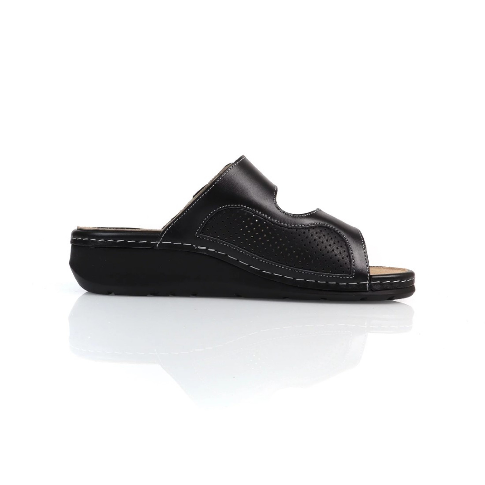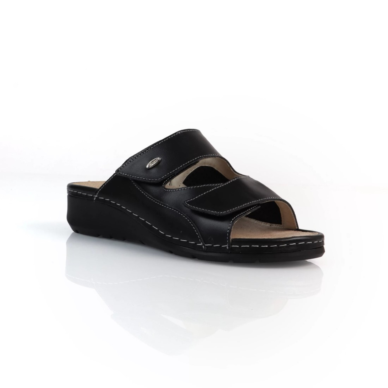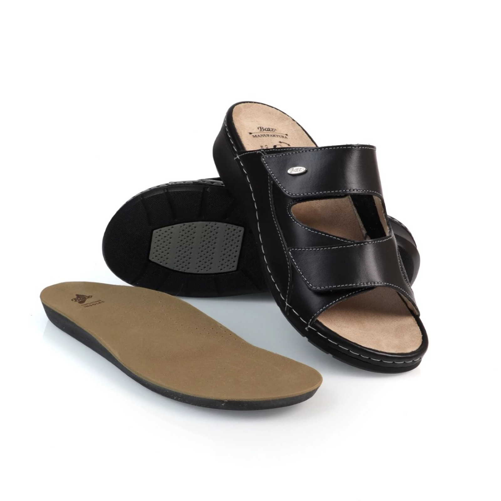 Batz Trudi női papucs fekete színben. Tökéletes választás, mely könnyen kombinálható bármilyen ruhával, sőt a kényelemről sem kell lemondanod. Hogy miért válaszd ezt a modellt? Mert amellett, hogy saját lábadra igazíthatod az állítható tépőzáras pánt segítségével, a lábbeli belső oldalára beépített speciális, elasztikus betét lehetővé teszi a Hallux Valgussal (bütyökkel) élők kiemelt kényelmét és gondoskodik lábaid egésznapos kényeztetéséről. Ezen kívül a cserélhető és kivehető talpbetét kiválóan igazodik a korszerű elvárásokhoz, sőt ha igazán luxus élményre vágysz, egyedi talpbetét is készíttethető hozzá.