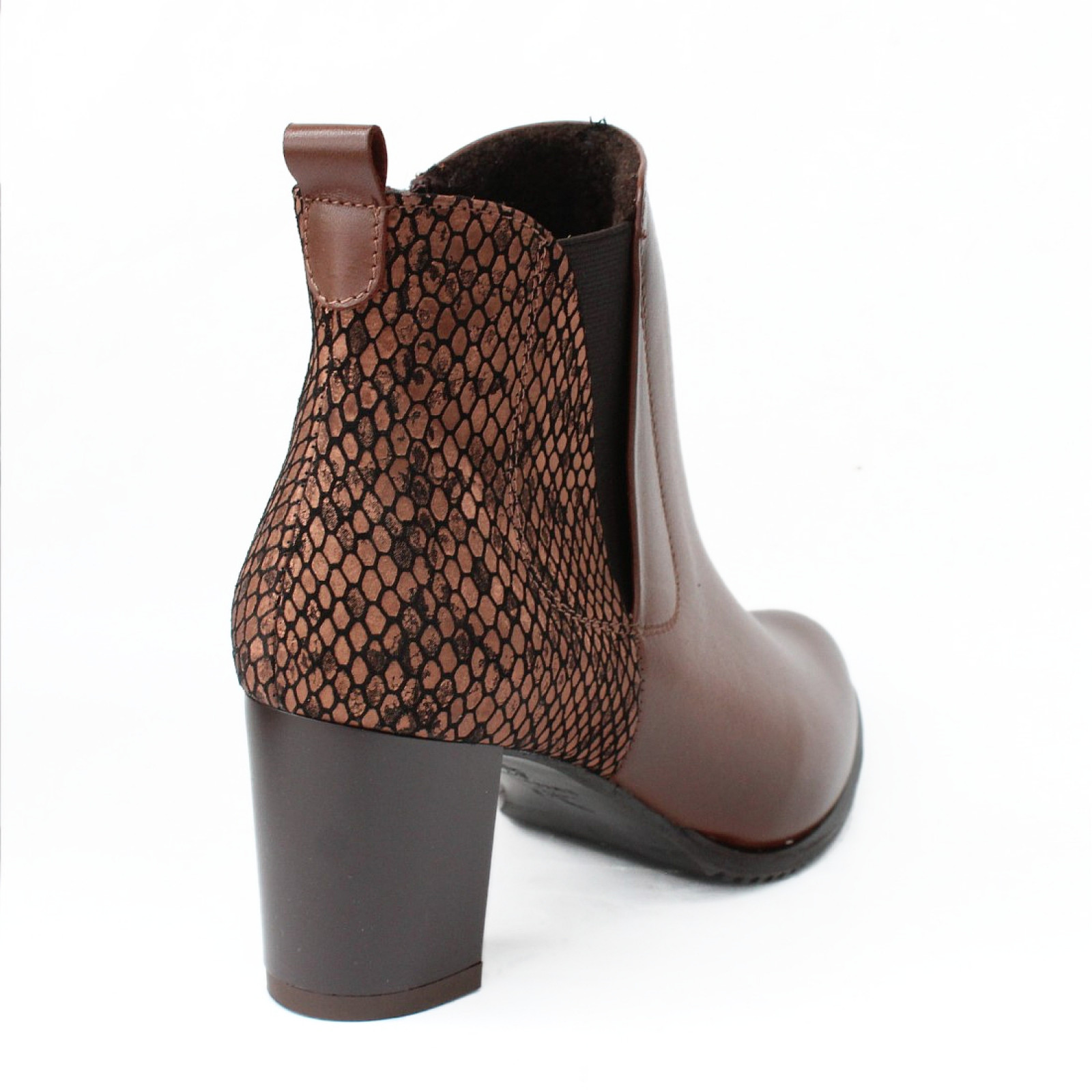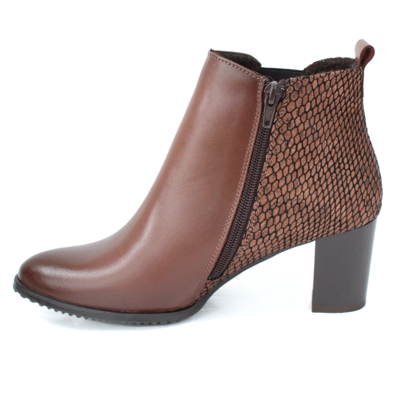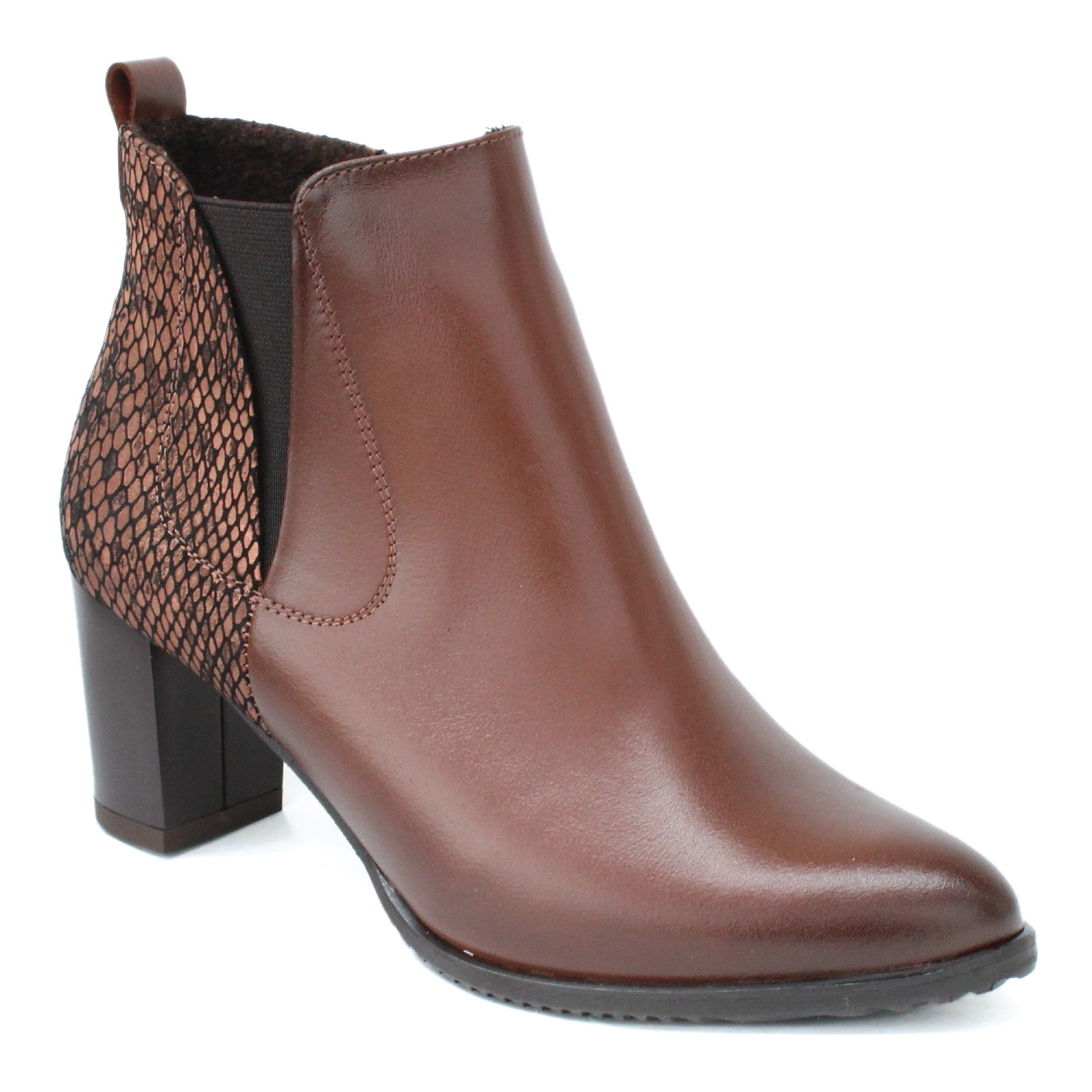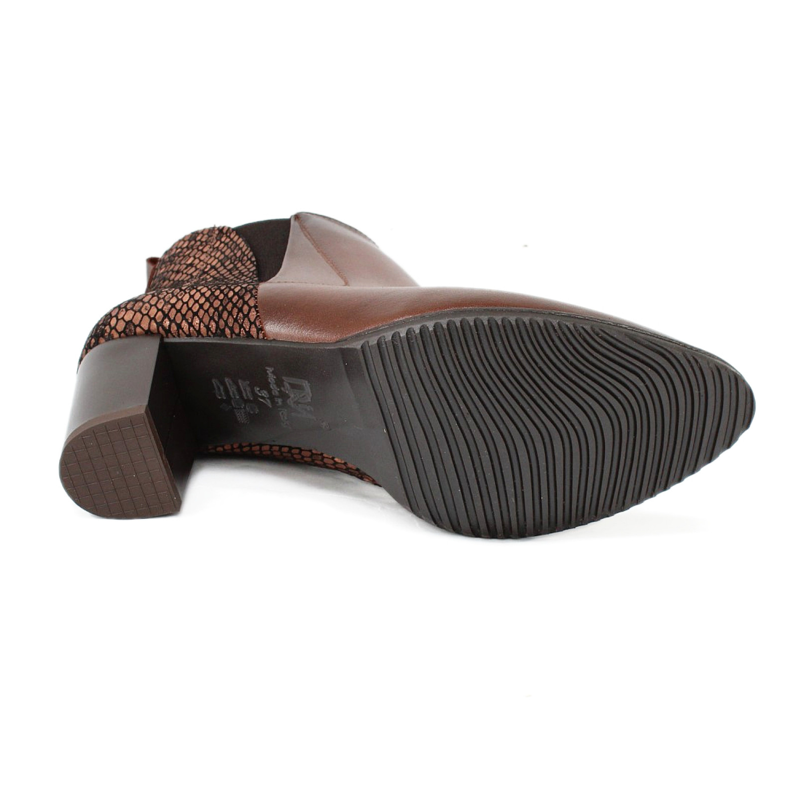 A DiMarco 2366-CZEKOLADA női bokacipő stílusos, modern megjelenésével minden öltözéket különlegessé tesz. Különleges, bronzos-barna kígyóbőr hatású felsőrésze igazán karakteres, miközben a kényelmes kialakítás gondoskodik a kellemes viseletről akár hosszabb időn át is. Stabil, közepes magasságú, tömbsarkával kényelmes és biztos járást ad. Ideális választás munkahelyre, rendezvényekre vagy bármilyen alkalomra, ahol fontos az ápolt megjelenés és a komfort. A DiMarco manufaktúra profi munkája prémium minőségű bőrből.