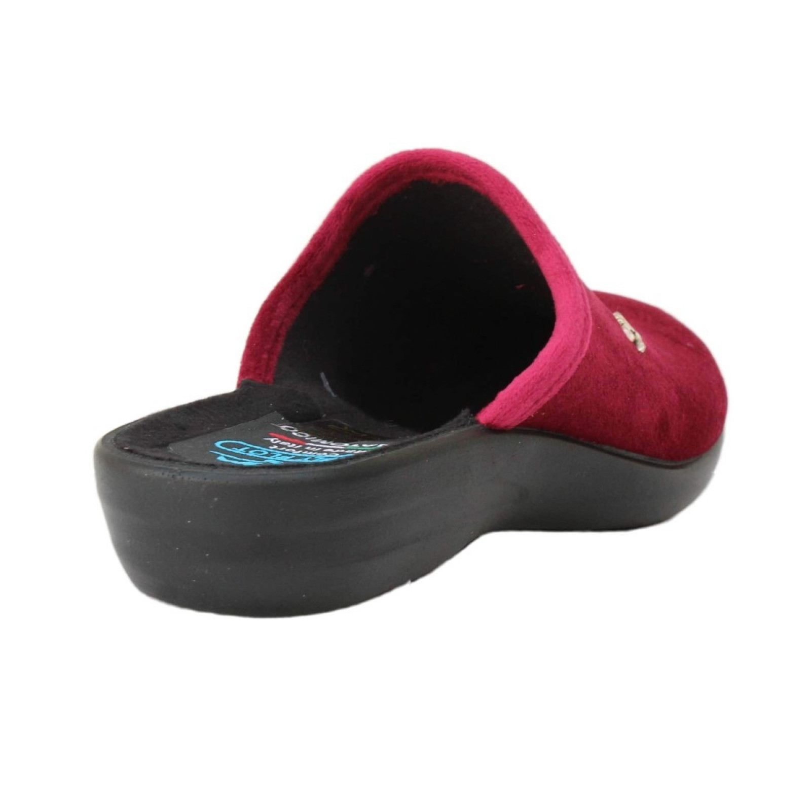 Bársonyos tapintású női házi papucs. Meleg és kényelmes, felveszi a láb formáját, Vastag talpa, rendkívül ruganyos, kényelmes járást biztosít köszönhetően a csúszásgátló (Antislip), ill. a rezgés csillapító (Antishock) technológiának. Az olasz gyártó kizárólag a legmagasabb minőségű anyagokat használja készítésekor