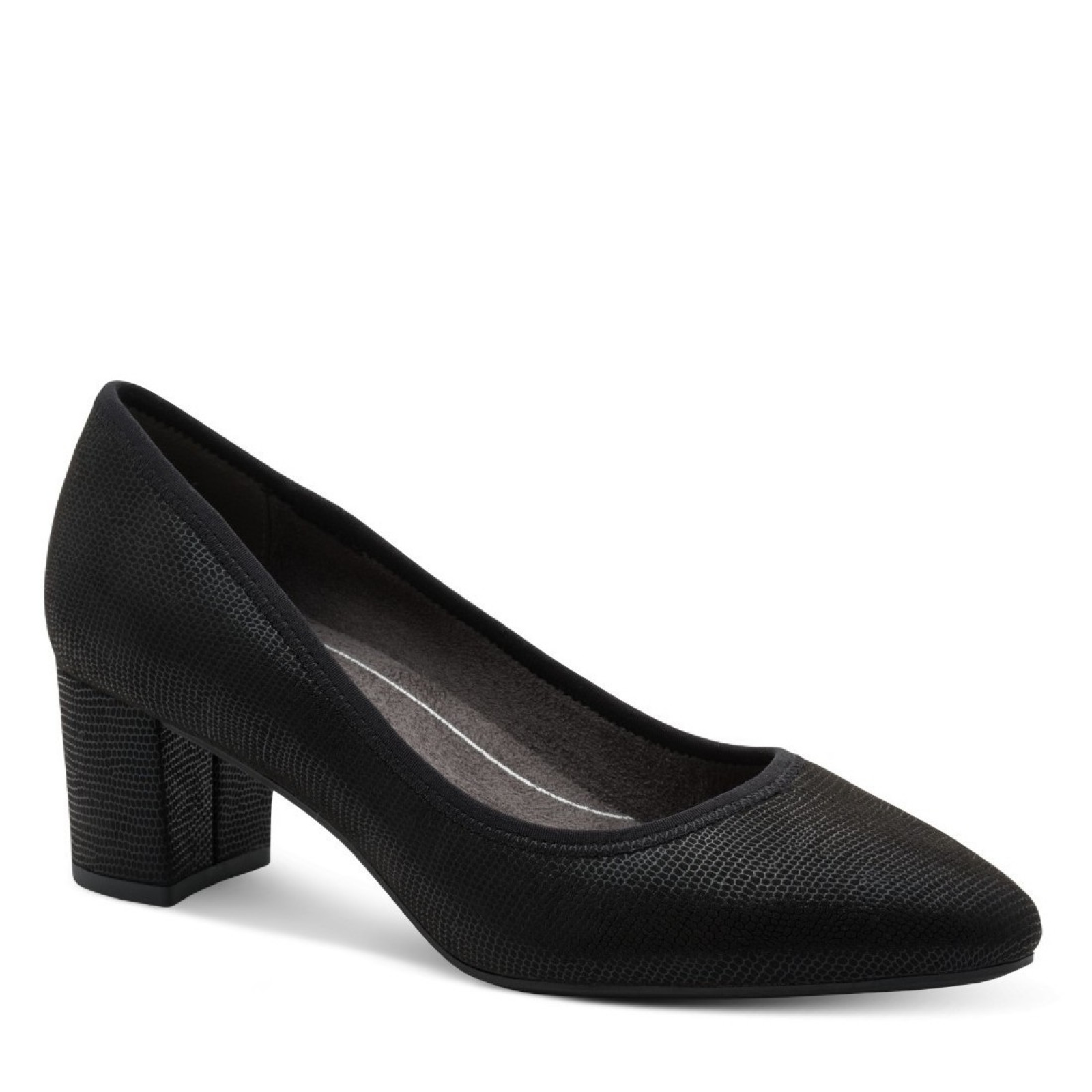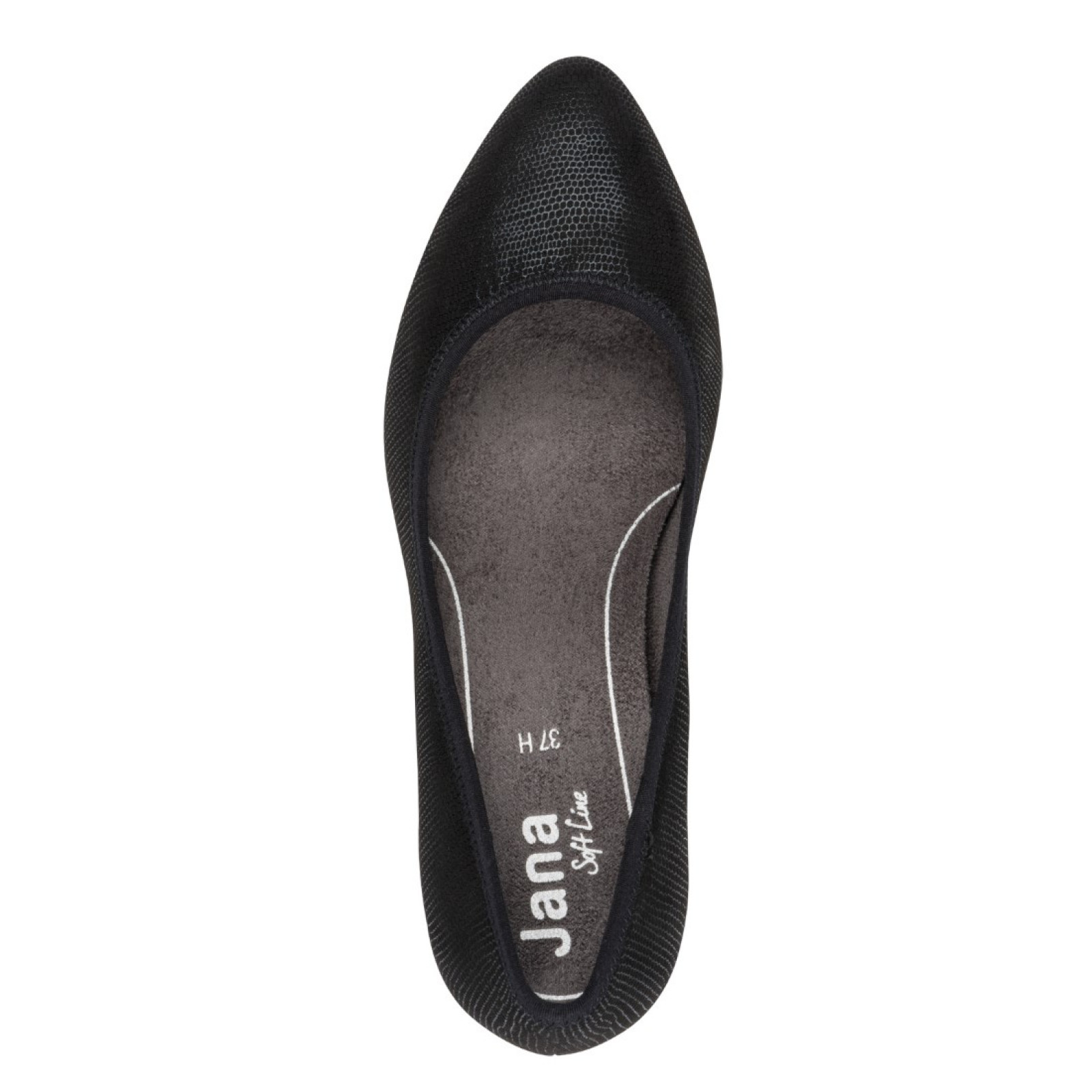 A Jana női alkalmi cipő letisztult, klasszikus formavilágával tökéletes választás munkába, irodai viselethez vagy elegánsabb hétköznapi alkalmakra. A fekete színű, finoman texturált felsőrész időtálló megjelenést biztosít, könnyen kombinálható szoknyával, nadrággal vagy kosztümmel. A stabil, közepes magasságú blokk sarok kényelmes járást nyújt egész nap, miközben nőies megjelenést ad. A Jana Soft Line kialakítás extra komfortot biztosít: a puha, párnázott talpbetét kíméli a lábat, és hosszabb viselés során is kellemes érzetet nyújt.