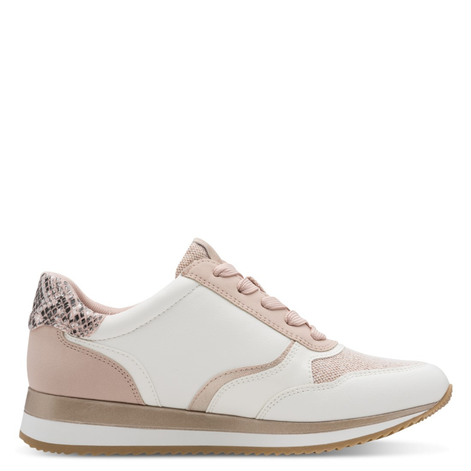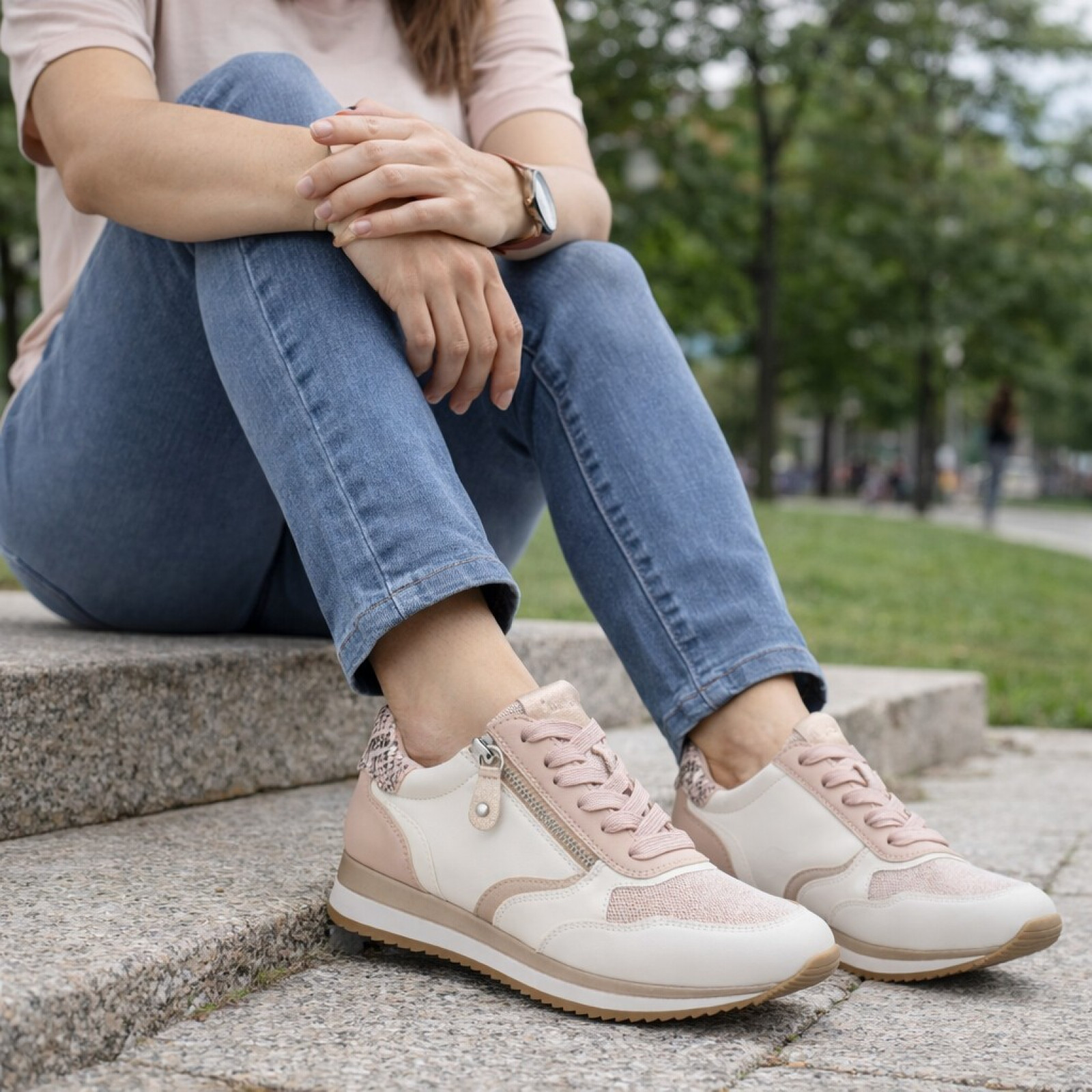 Ez a Jana sneaker elegáns rózsaszín és fehér színével és kígyóbőr mintás részleteivel tökéletes választás a mindennapokra. Oldalsó cipzárja megkönnyíti a fel- és levételt, míg a fűzős kialakítás biztos tartást ad. A vastag, könnyű talp kényelmes járást biztosít egész nap, a belső pedig extra komfortérzetet nyújt. Ideális városi sétákhoz, munkába vagy hétköznapi viselethez. Különlegessége, hogy 100%-ban vegán.