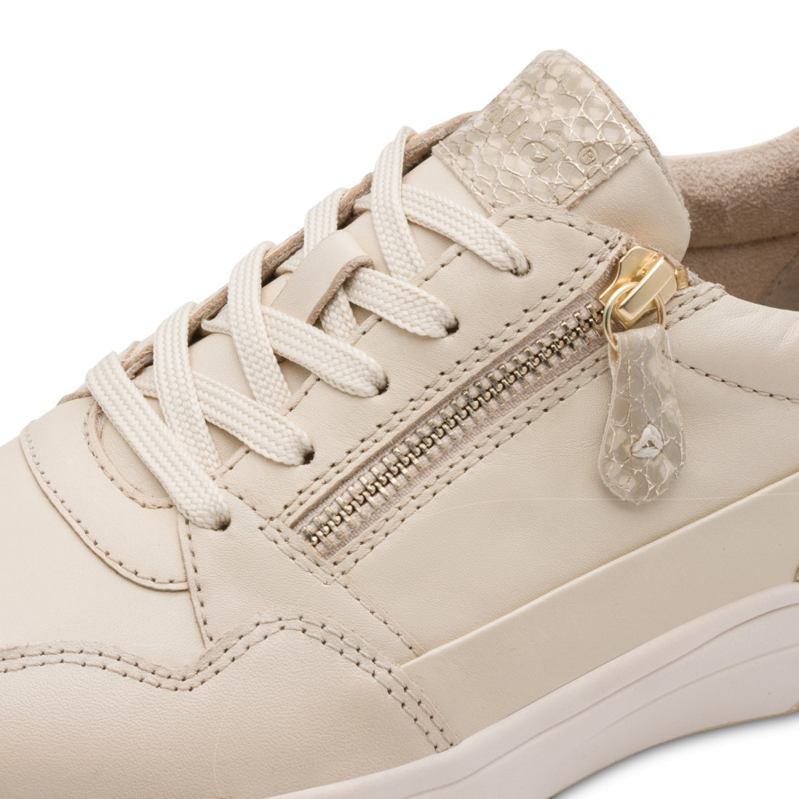Jana női sportos fűzős-cipzáras bőr félcipő - LT gold - 23702-46-909 07739 bemutatása