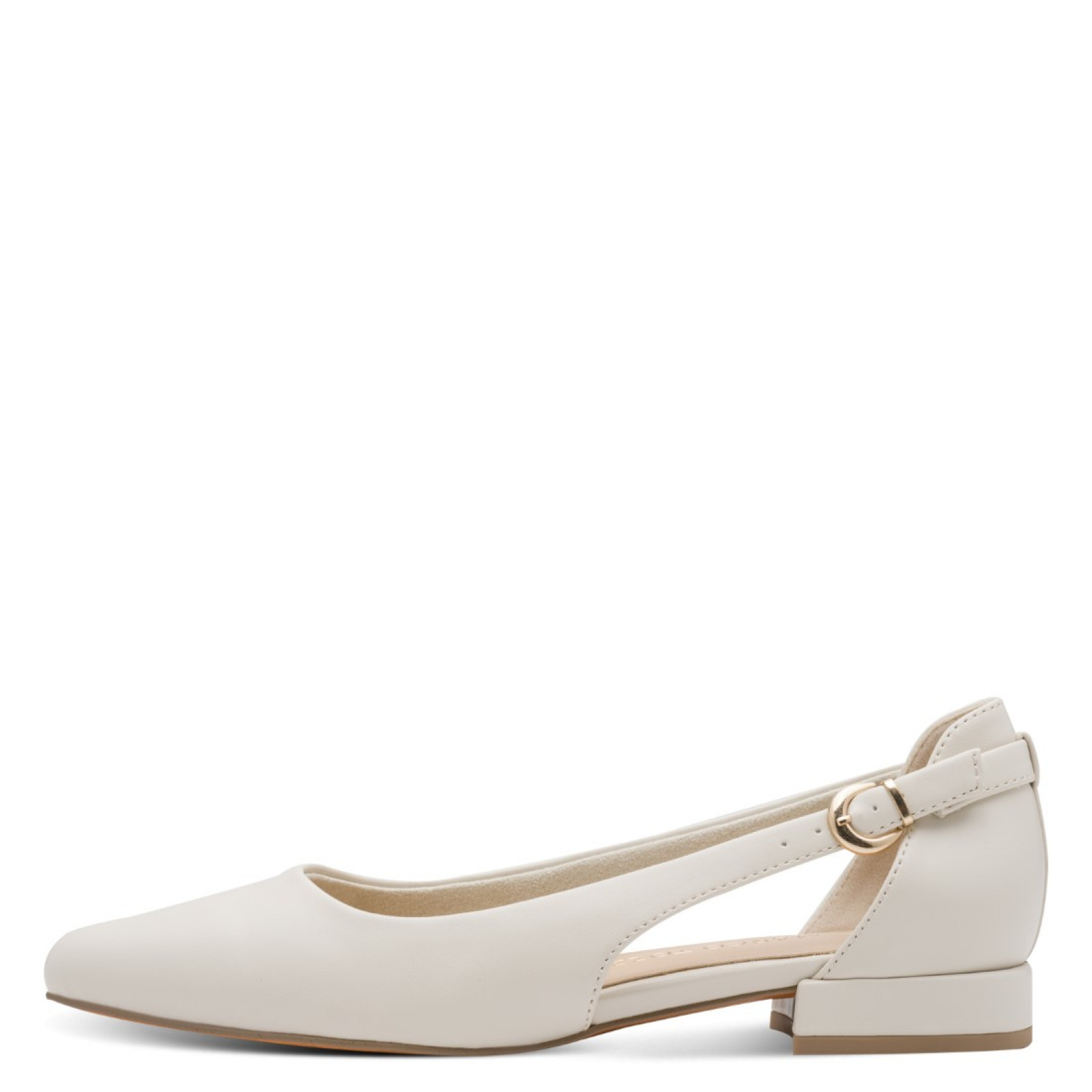 Oldalt nyitott balerina jellegű Marco Tozzi női cipő fekete színben. A könnyű csatos női cipő kényelmes viseletet biztosít a lábnak.