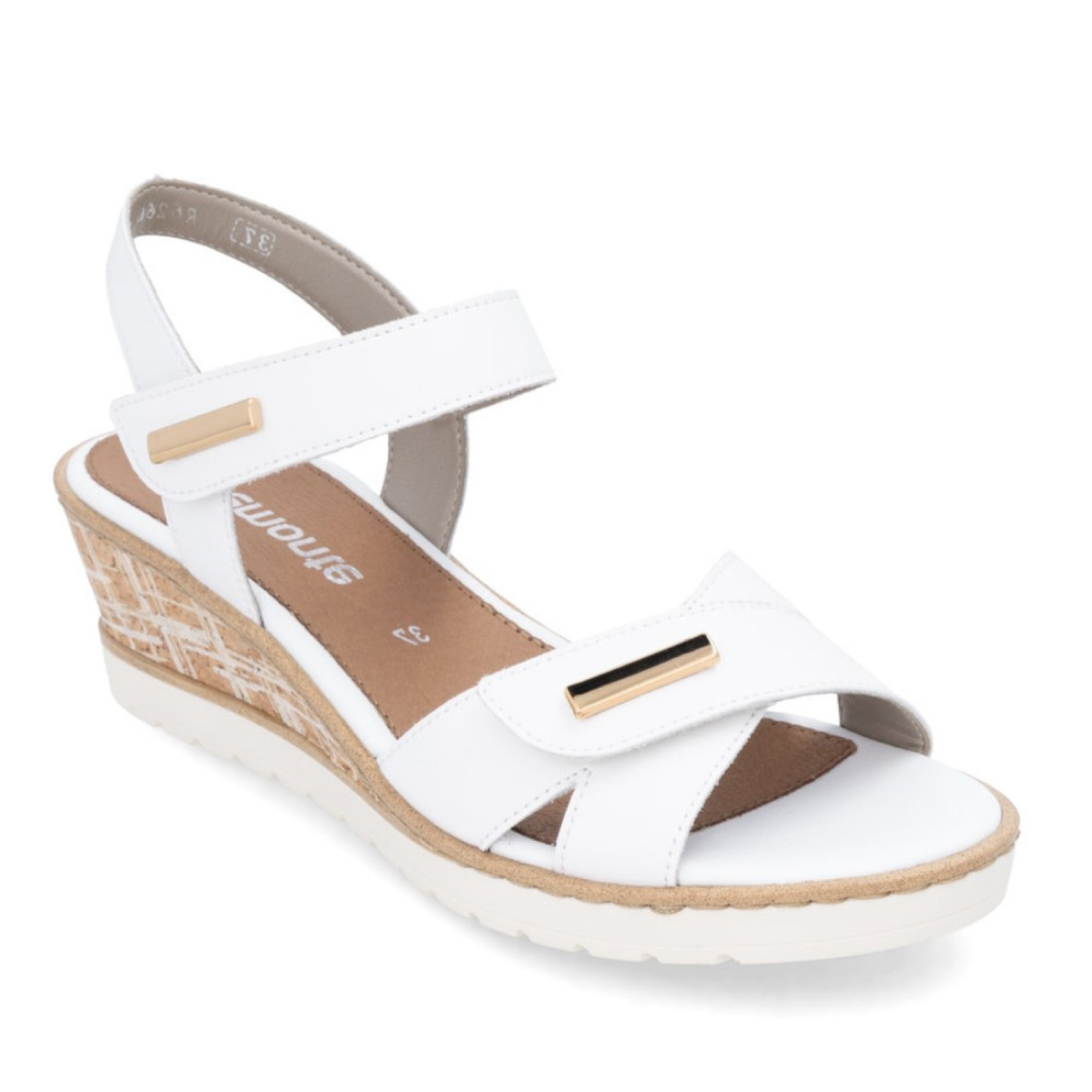 Remonte női fehér tépőzáras éktalpú bőr szandál R6266-80