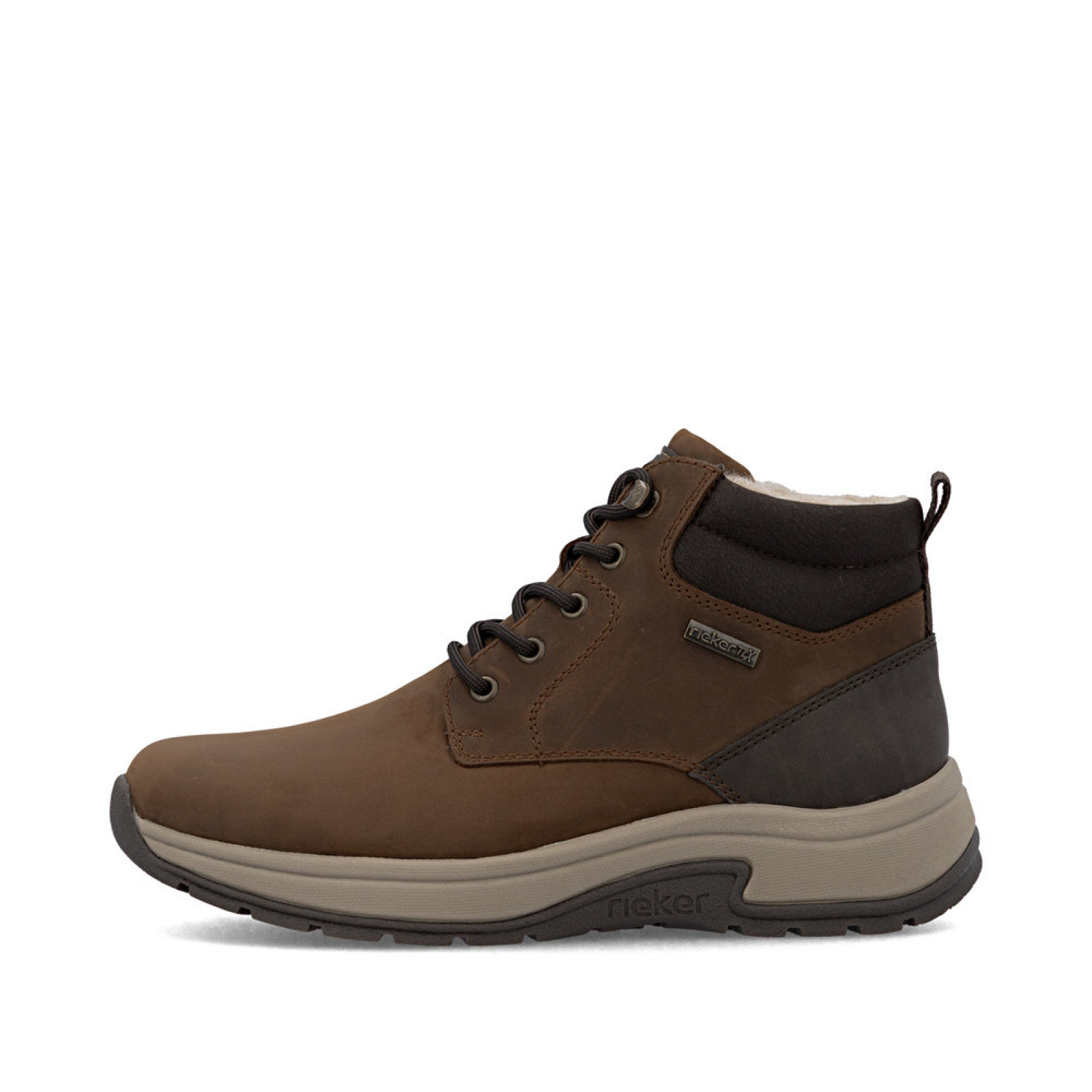 Ezek a RIEKER férfi bakancsok megbízható védelmet, meleget és kényelmet nyújtanak hideg és esős napokon. A tartós anyagok kombinációjából készült felsőrész vízálló membránnal van ellátva, amely szárazon tartja a lábad esőben vagy hóban is. A praktikus fűzőrendszer belső cipzárral lehetővé teszi a gyors és egyszerű felvételt, belül pedig kellemes szigetelést találsz valódi birkagyapjúval, amely kiváló szigetelést garantál a hideg ellen. A kivehető talpbetét alkalmazkodik a lábad igényeihez, míg a speciális ütéscsillapító technológiával ellátott talp kényelmet biztosít járás közben, és lenyűgöző a kialakításával is. Ideális választás télire, amely ötvözi a funkcionalitást, a meleget és a modern megjelenést.