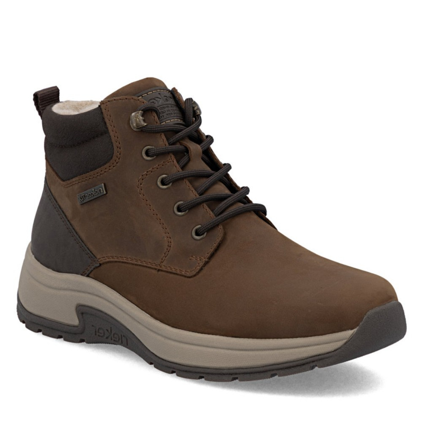 Ezek a RIEKER férfi bakancsok megbízható védelmet, meleget és kényelmet nyújtanak hideg és esős napokon. A tartós anyagok kombinációjából készült felsőrész vízálló membránnal van ellátva, amely szárazon tartja a lábad esőben vagy hóban is. A praktikus fűzőrendszer belső cipzárral lehetővé teszi a gyors és egyszerű felvételt, belül pedig kellemes szigetelést találsz valódi birkagyapjúval, amely kiváló szigetelést garantál a hideg ellen. A kivehető talpbetét alkalmazkodik a lábad igényeihez, míg a speciális ütéscsillapító technológiával ellátott talp kényelmet biztosít járás közben, és lenyűgöző a kialakításával is. Ideális választás télire, amely ötvözi a funkcionalitást, a meleget és a modern megjelenést.