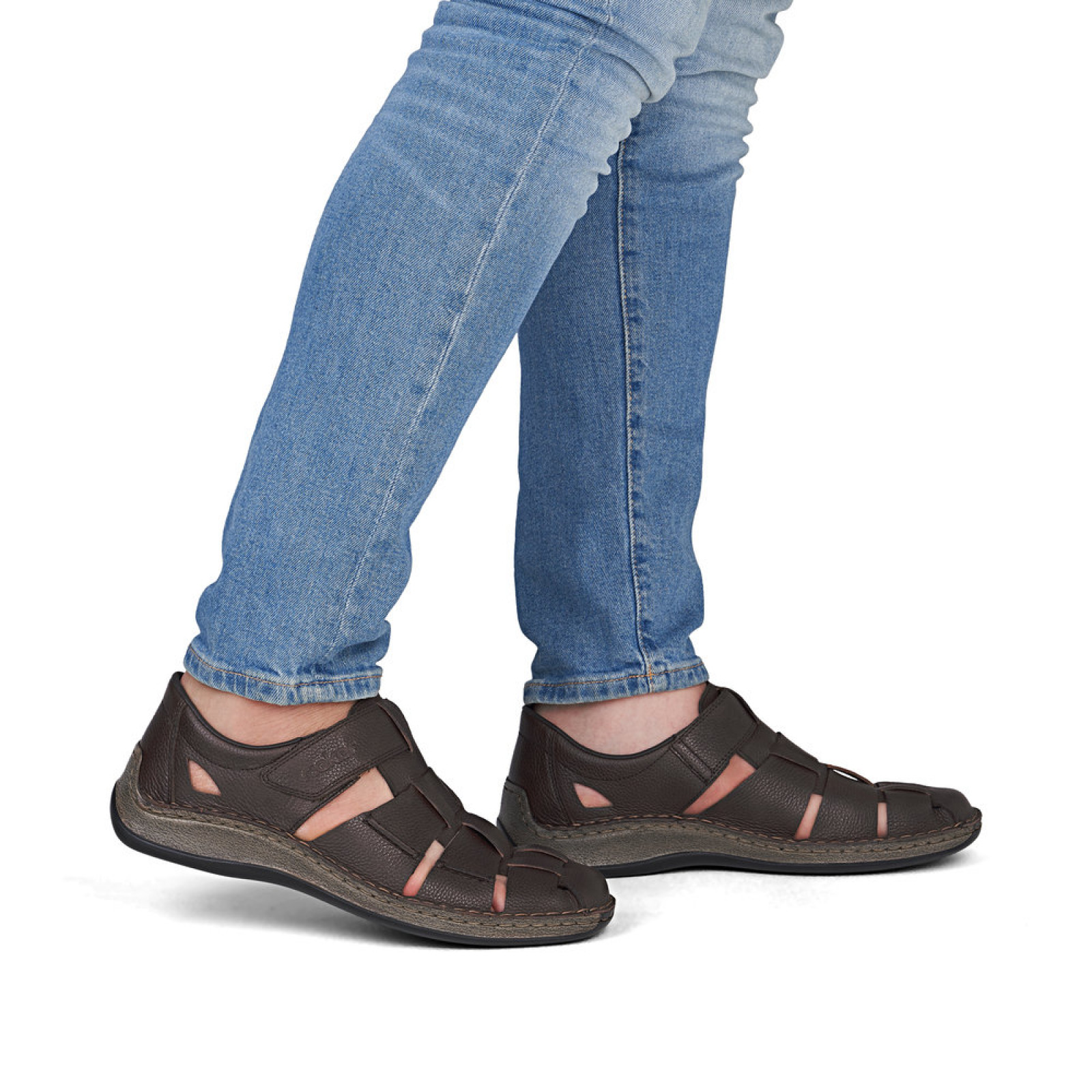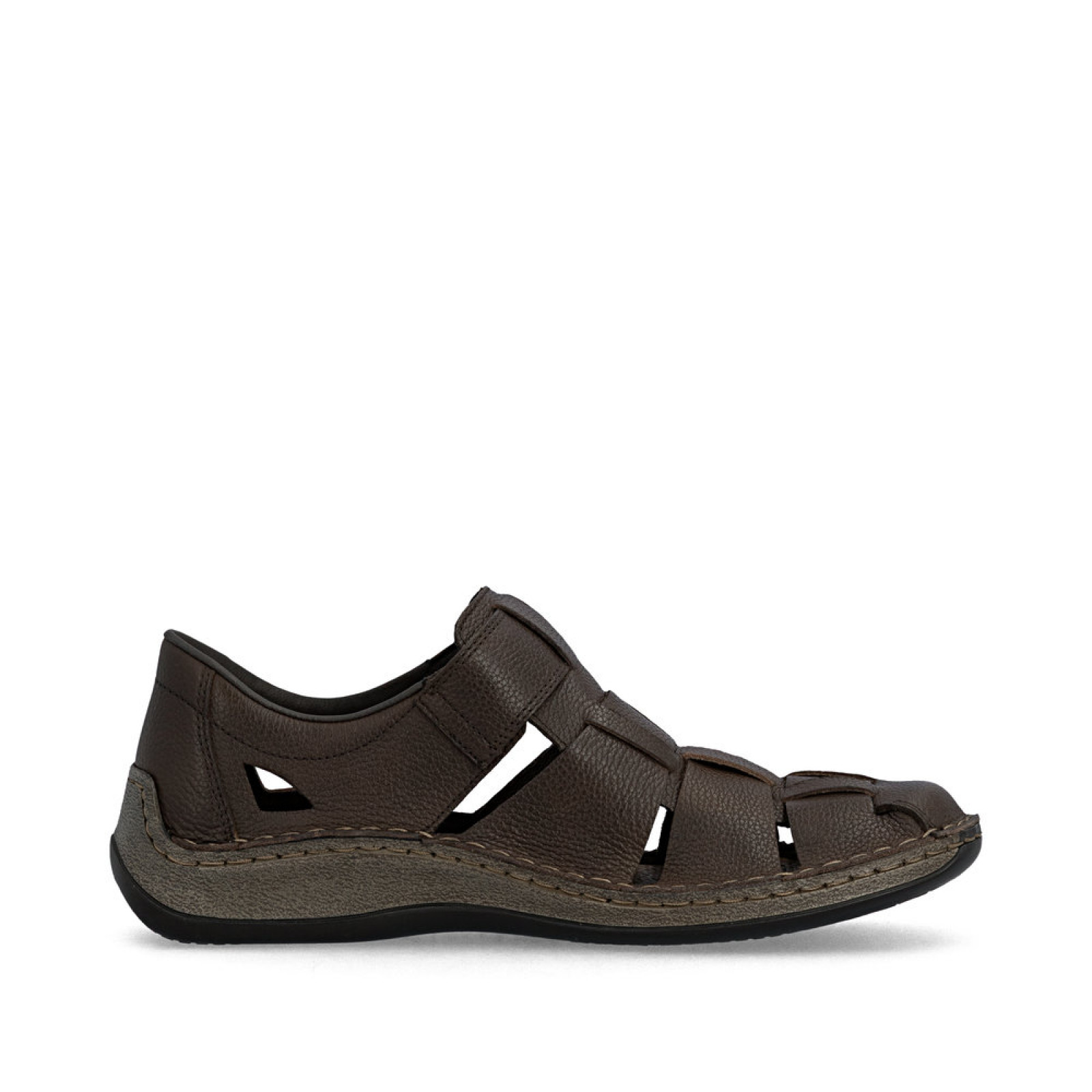 Könnyű, "antistress" tulajdonságokkal rendelkező Rieker bőr, férfi tavaszi/nyári modell. Rugalmas, hajlékony talpával és puha talpbélésével megfelelő kényelmet, lyukacsos felsőrésze pedig a nagy melegben kellemes szellőzést biztosít viselőjének. Pántja tépőzárral állítható.