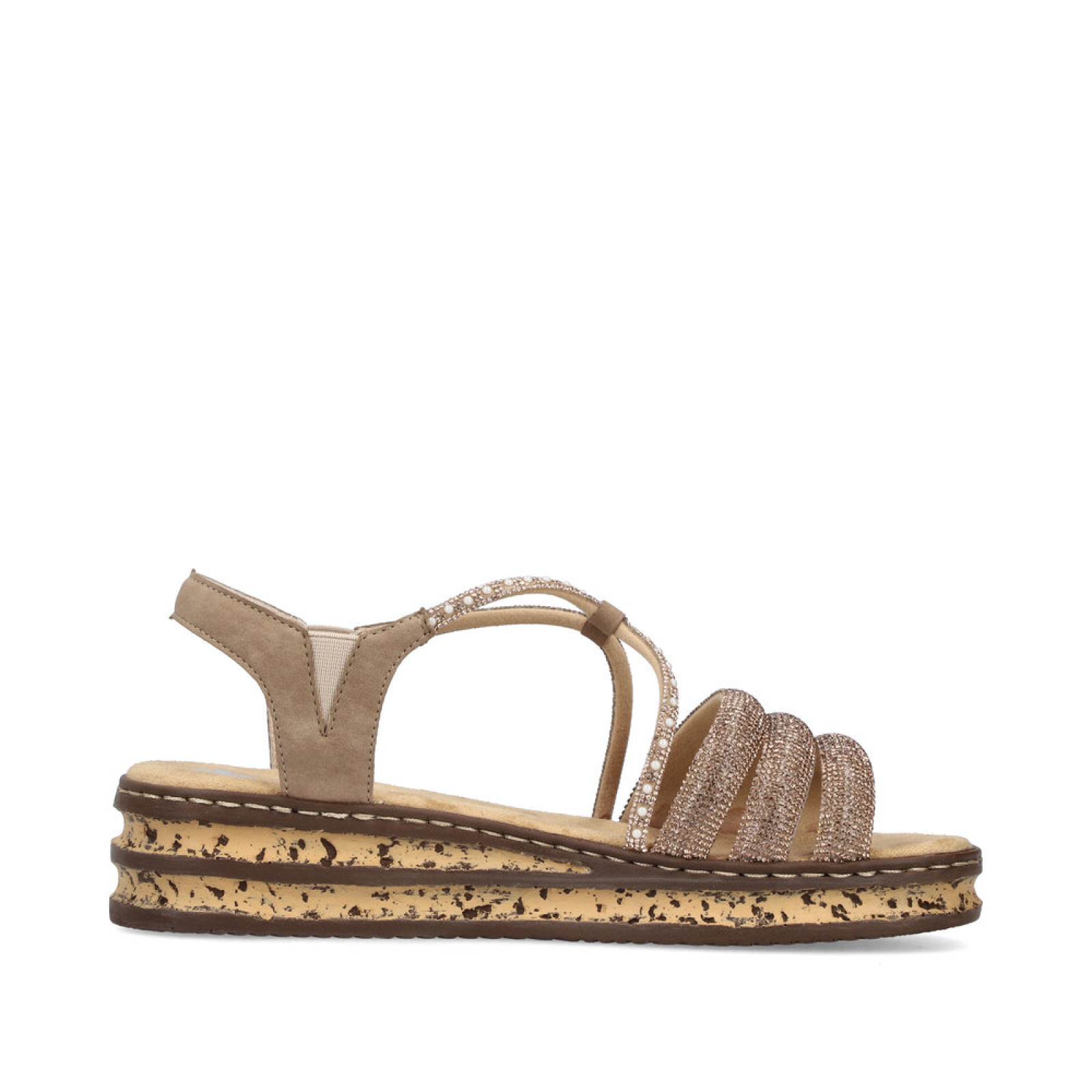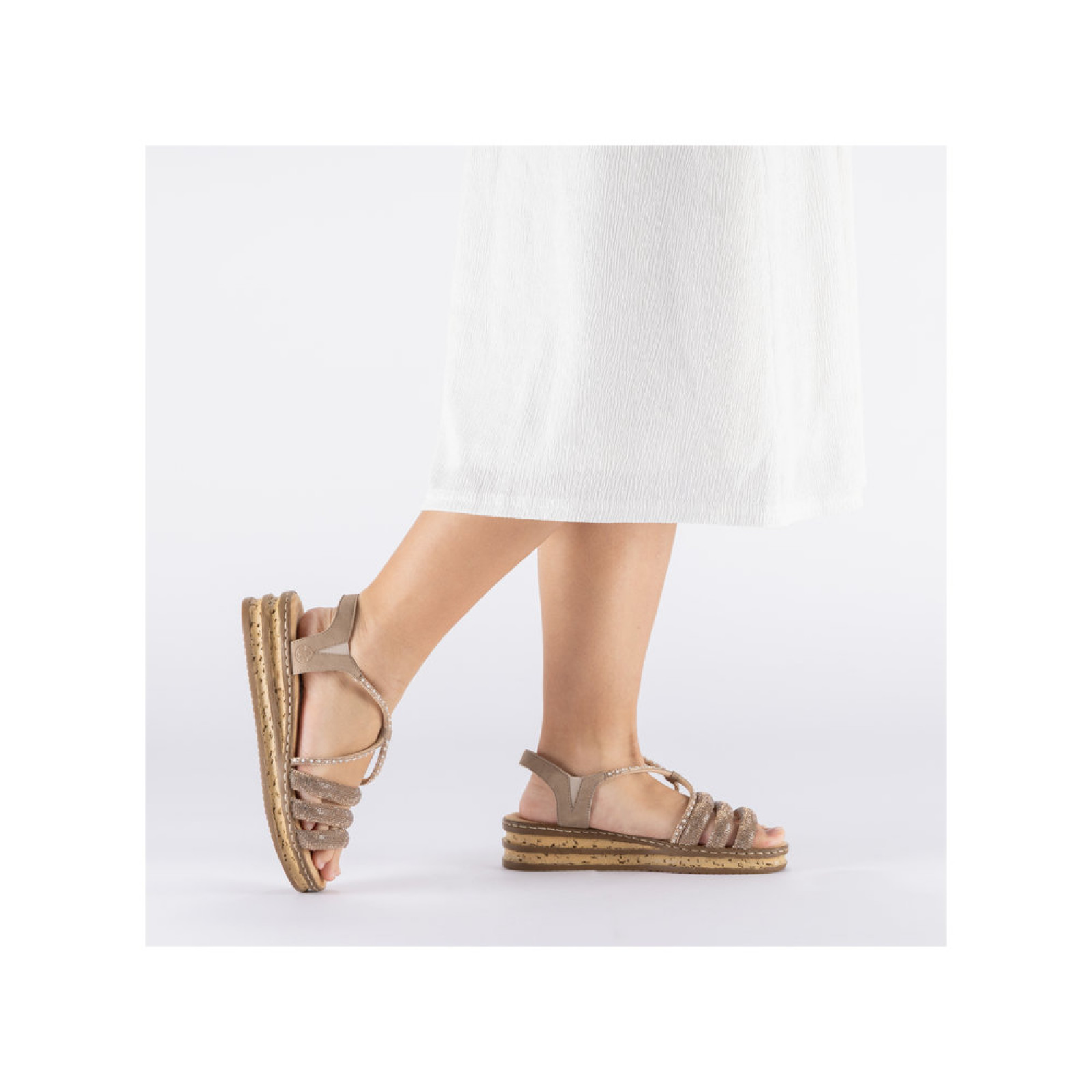 Ez a Rieker szandál azoknak készült, akik nem akarnak kompromisszumot kötni a kényelem és a nőies megjelenés között. A finoman csillogó metál árnyalat feldobja a szetted, miközben a praktikus kialakítás gondoskodik arról, hogy valóban jól is érezd magad benne.