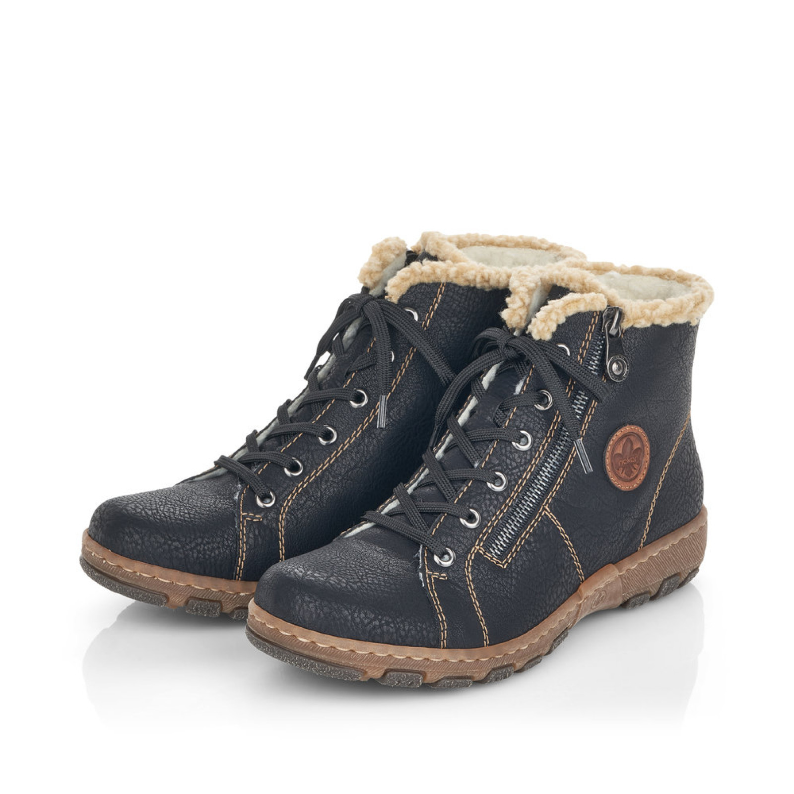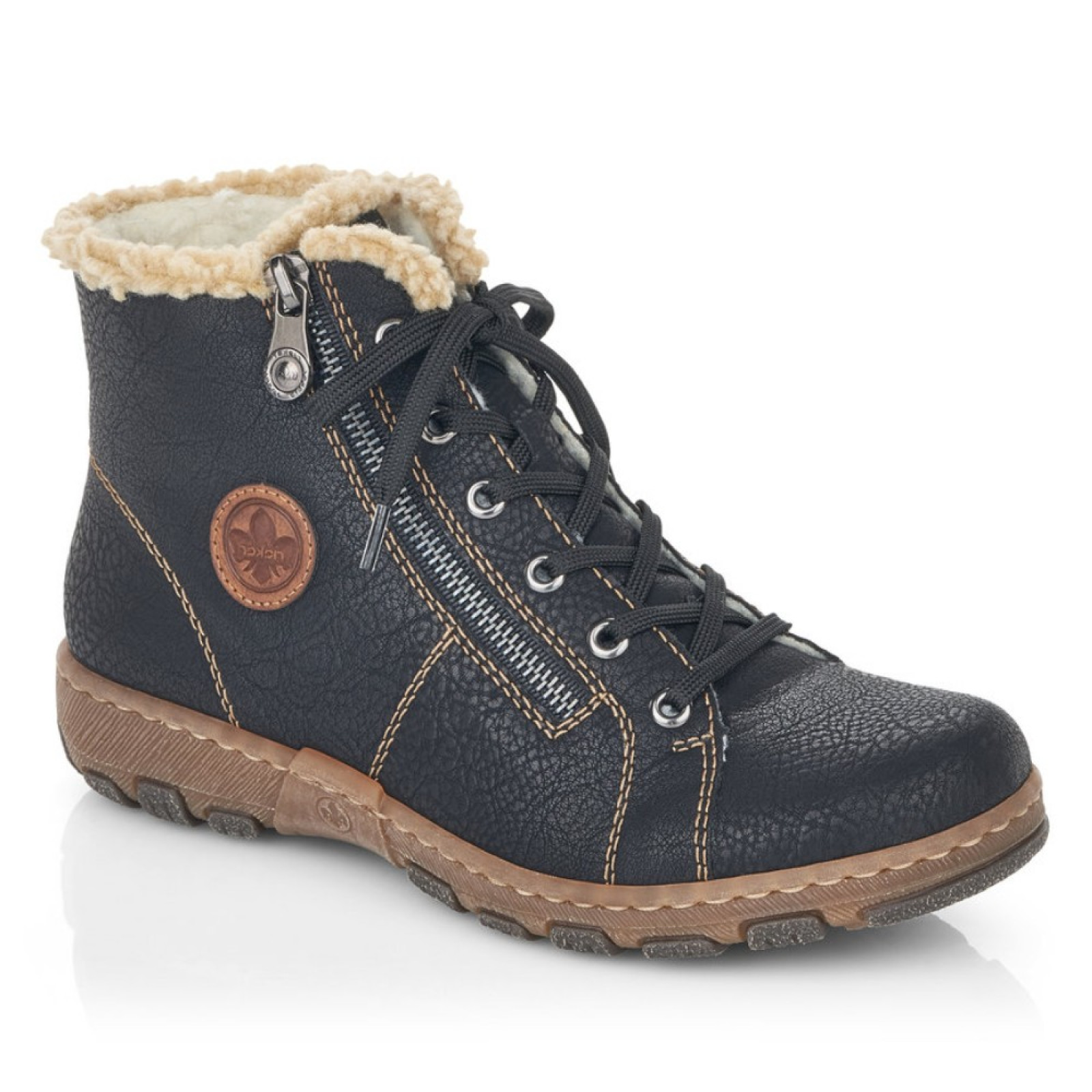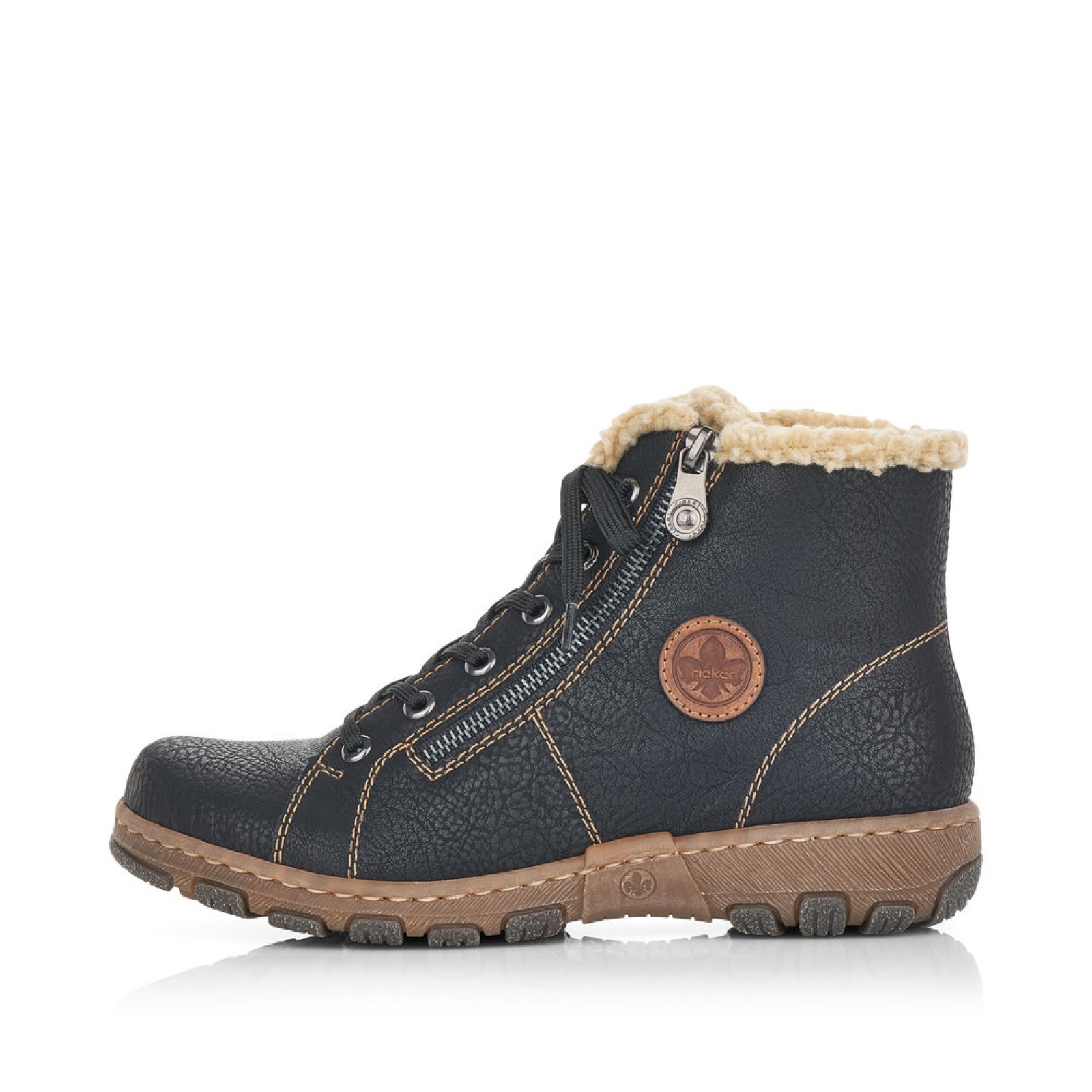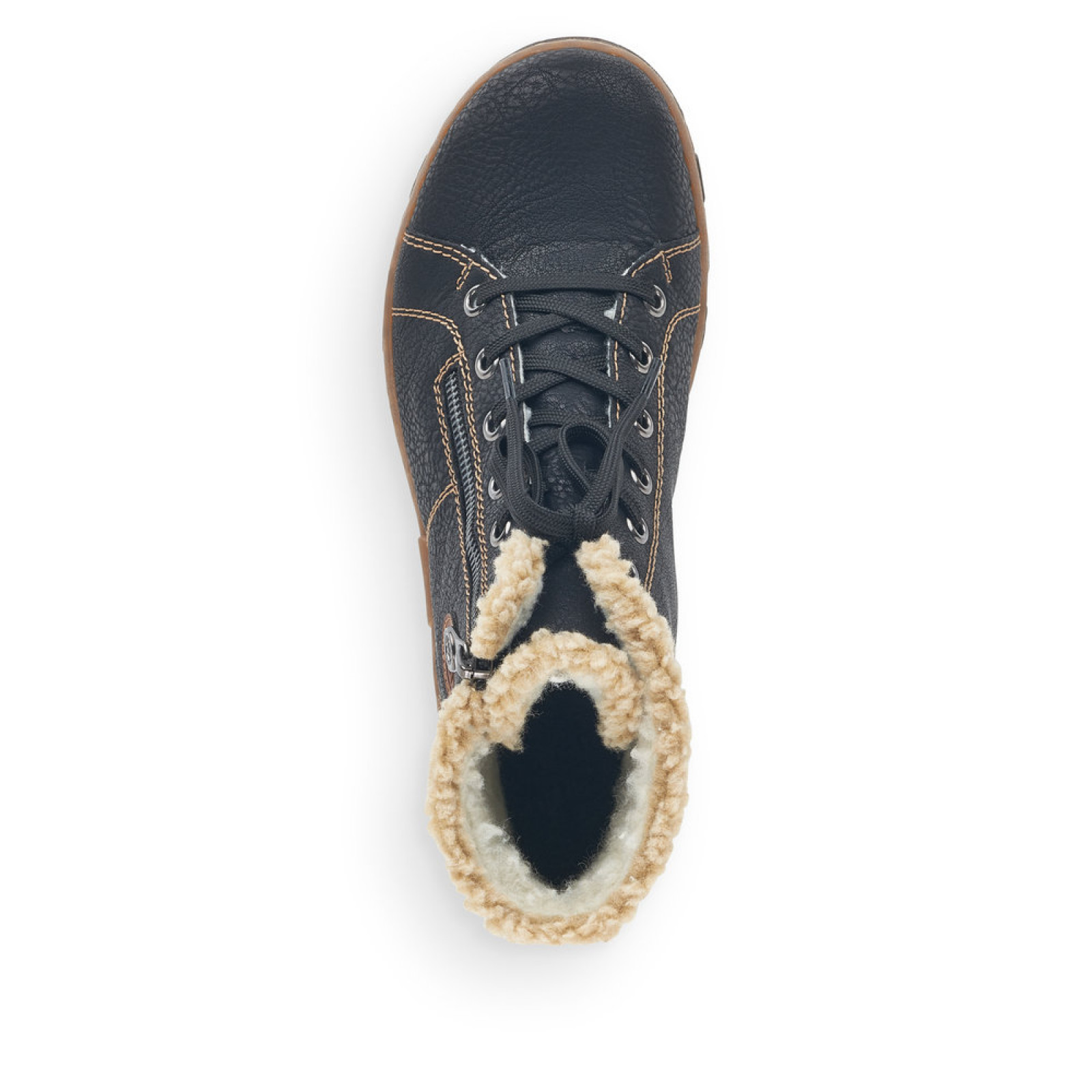 Rieker fekete női fűzős cipzáras bokacipő meleg béléssel Z0121-00
