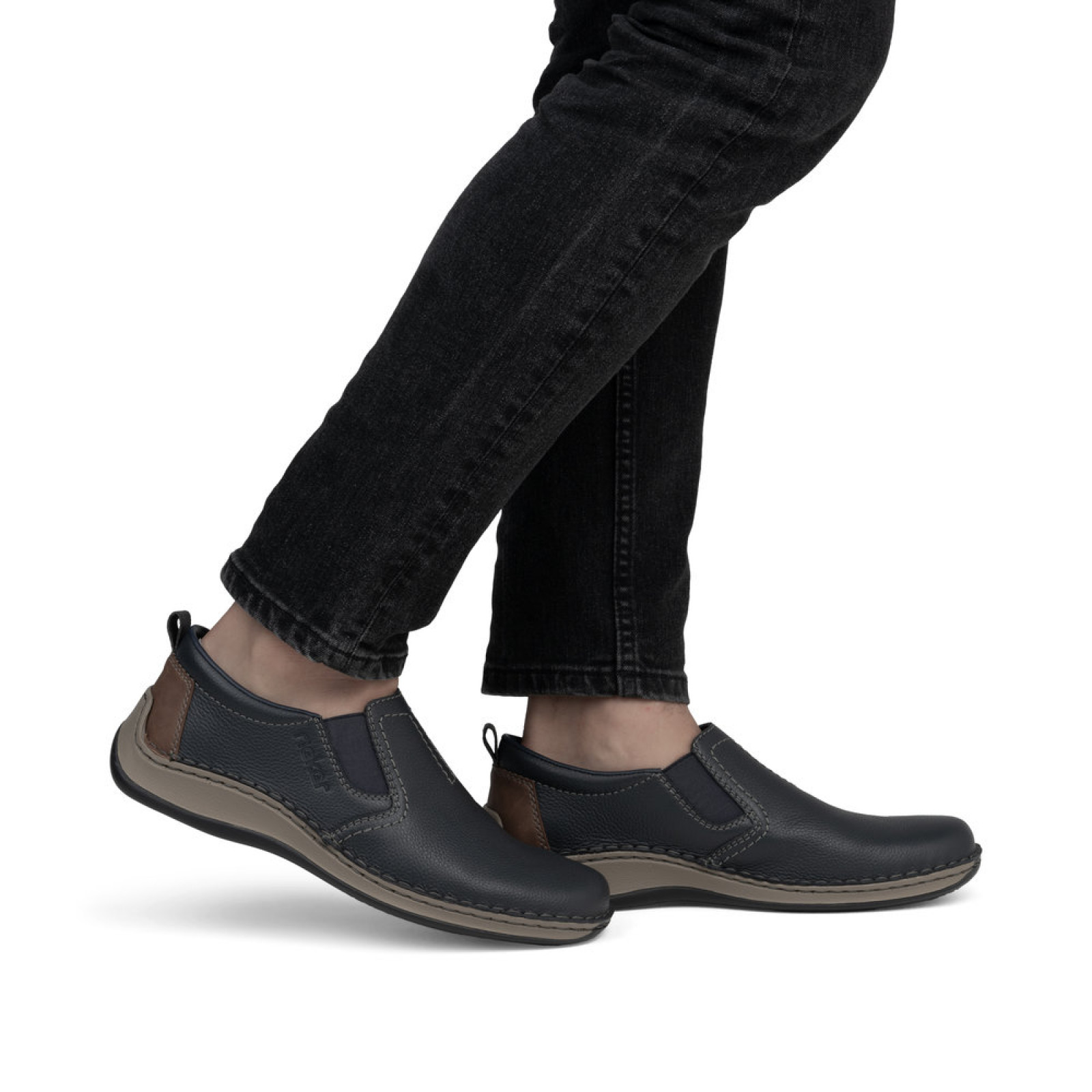 A RIEKER férfi bőrcipők kék árnyalatban az időtlen stílus, a minőség és a kényelem ideális kombinációját képviselik. Egyszerű kialakításuknak köszönhetően könnyedén kombinálhatod őket bármilyen öltözékkel – legyen szó akár munkanapról, társasági eseményről vagy szabadidőről. A felvételt megkönnyítik a lábfejen található praktikus, rugalmas gumiszalagok, amelyek a tökéletes illeszkedést is biztosítják a lábhoz. A cipő elejét díszes varrás és nyomtatott RIEKER logó egészíti ki, amelyek egyediséget kölcsönöznek a modellnek. Belül egy bőr talpbetét található, amely minden lépésnél maximális kényelmet biztosít, és szélesebb szabásának köszönhetően ideális választás a teltebb lábú férfiak számára is. A rugalmas, ütéscsillapító talp garantálja a kényelmes járást egész nap, bárhová is visznek a lépteid. Ezek a RIEKER cipők nagyszerű választást jelentenek minden férfi számára, aki megbízható cipőt keres, amelyben a hangsúly a minőségen, a kényelemen és az univerzális dizájnon van.