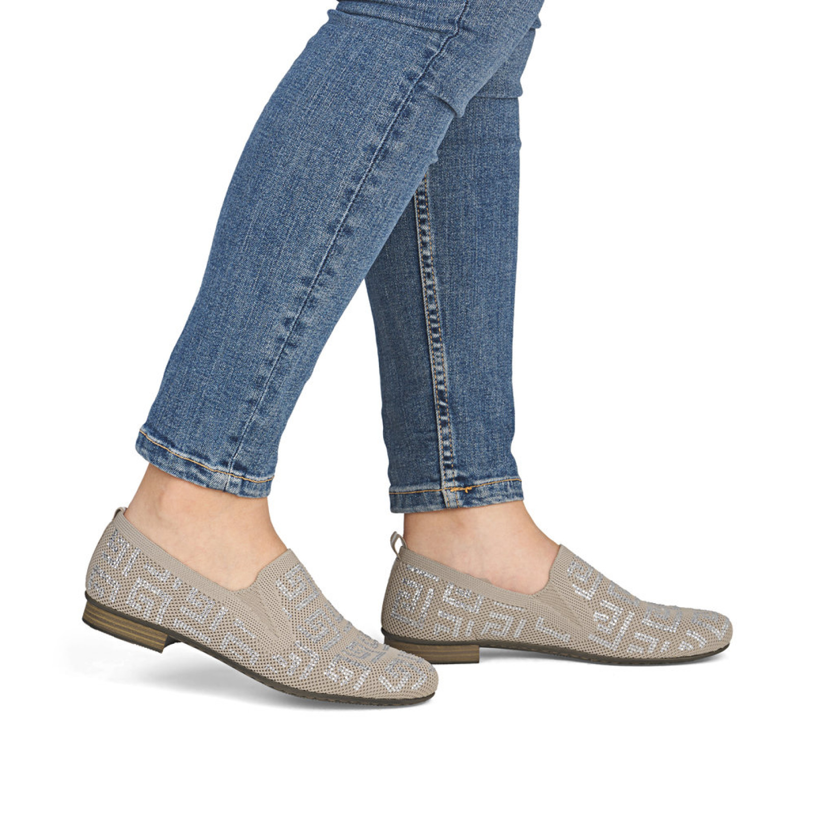 Rieker 51953-62 női bézs textil mokaszin – könnyed komfort minden napra