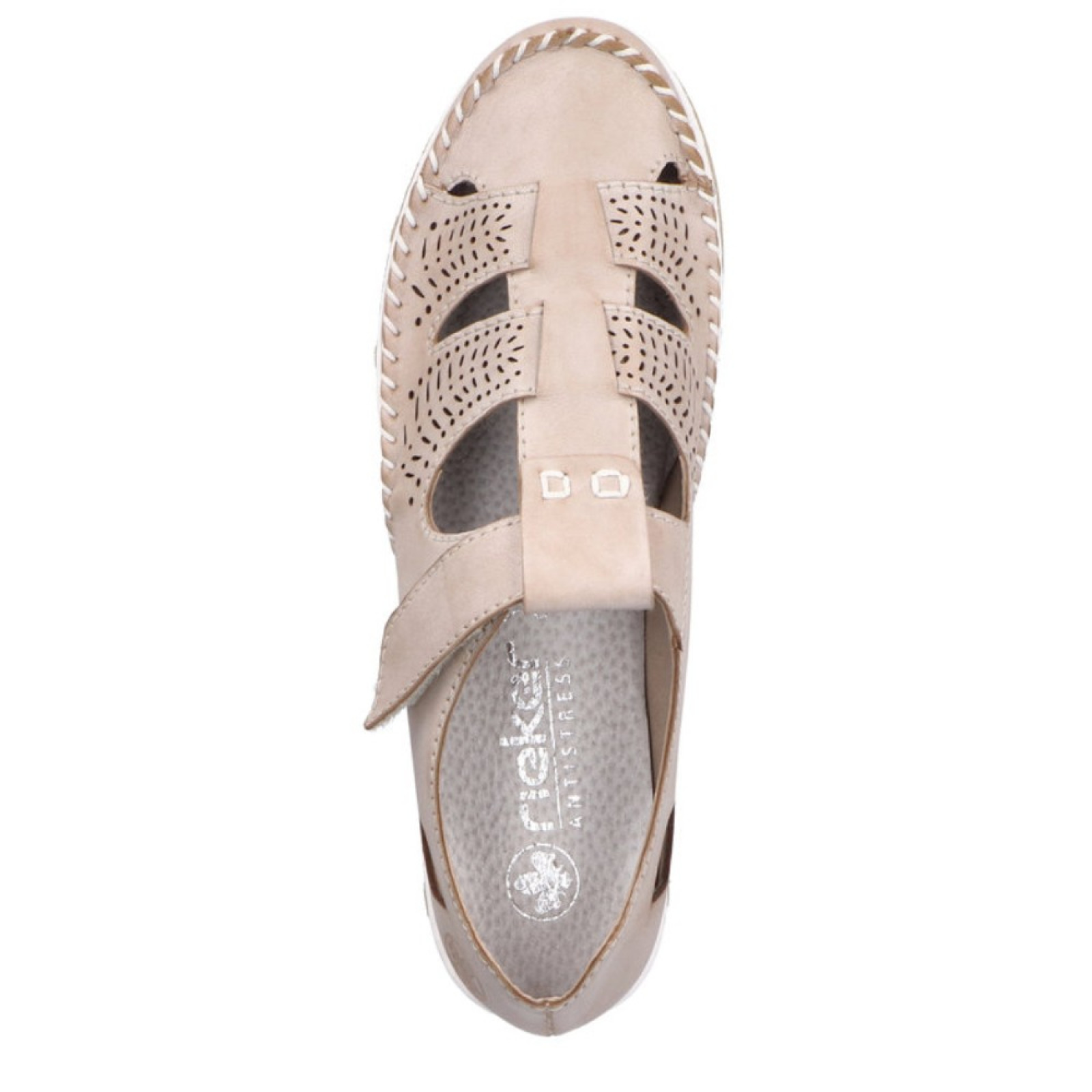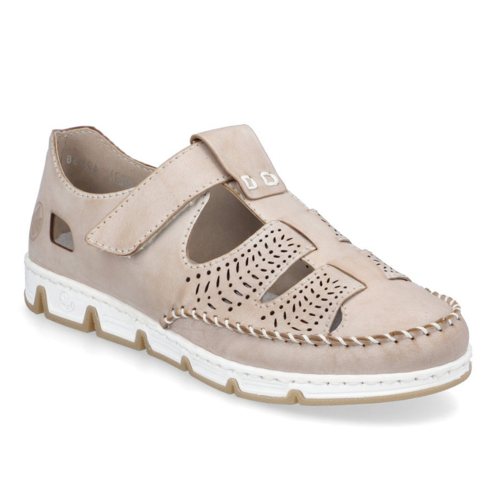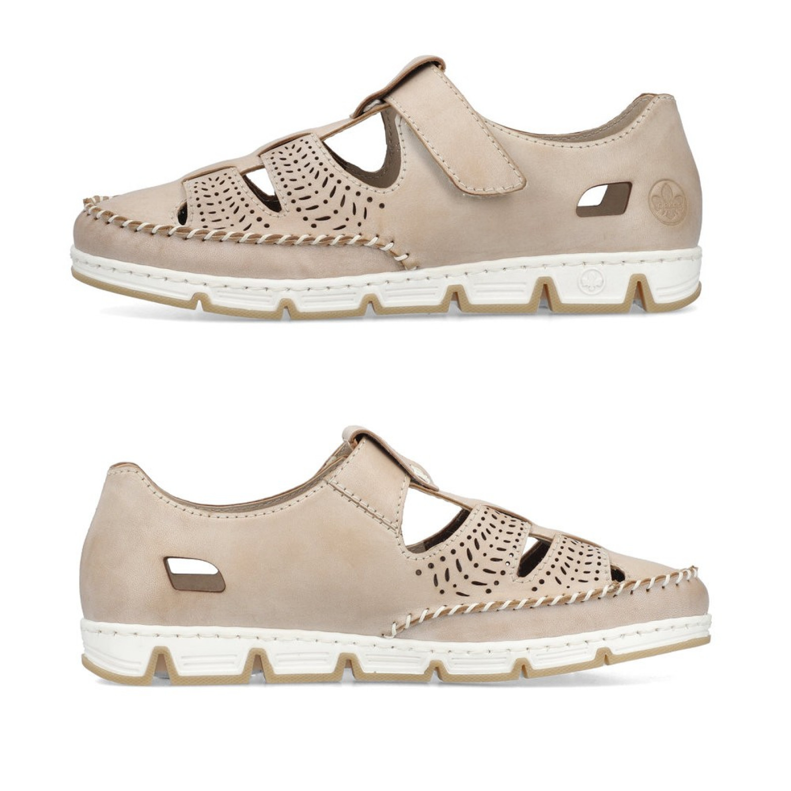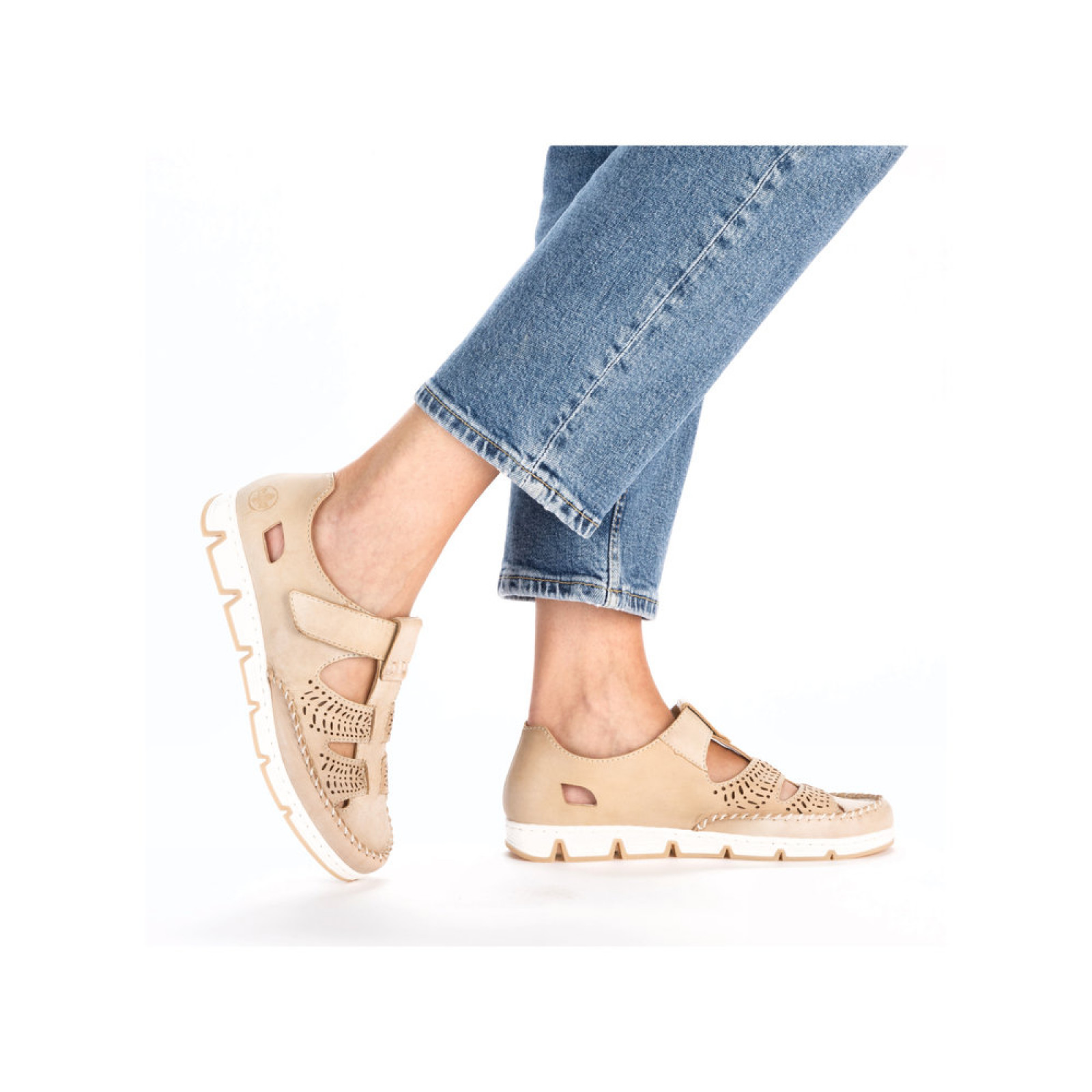 Rieker női lyukacsos tépőzáras szandálcipő 49958-61 bézs mix bemutatása