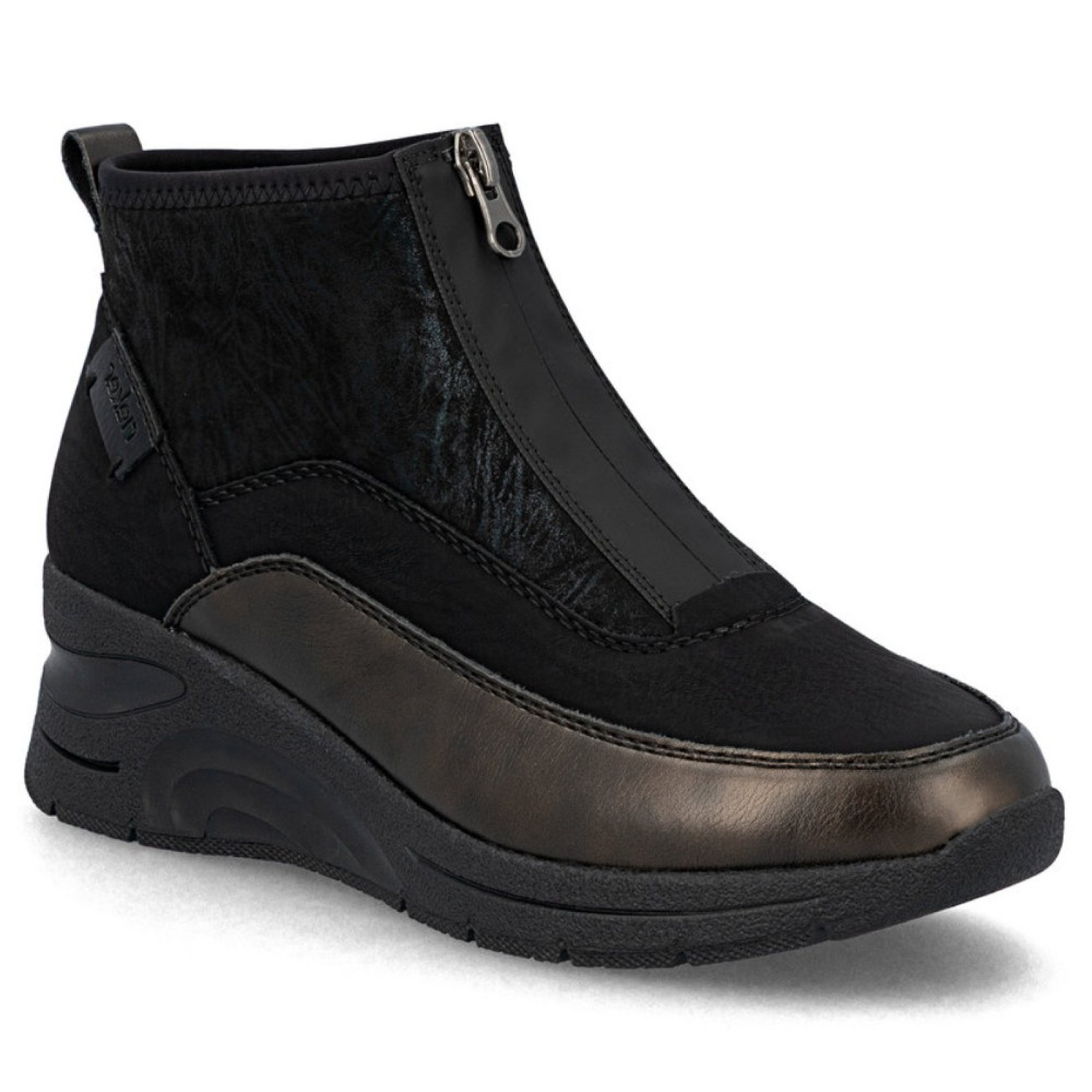 A RIEKER divatos cipői első pillantásra magára vonzzák a tekintetet az anyagok stílusos kombinációjának és a finom tükröződéseknek köszönhetően, ami kivételes karaktert kölcsönöz nekik. A rüsztön található praktikus cipzár megkönnyíti a felvételt, míg a puha, kivehető talpbetét alkalmazkodik a láb formájához és egész napos kényelmet biztosít. A tökéletes kialakítás nemcsak magasabb talppal rendelkezik, amely fokozza az összképet, hanem stabilitást is biztosít, és az Antistress technológiának köszönhetően hatékonyan elnyeli az ütéseket járás közben. Ez a modell ideális választás azoknak a nőknek, akik a divatos dizájnt maximális kényelemmel szeretnék ötvözni.
