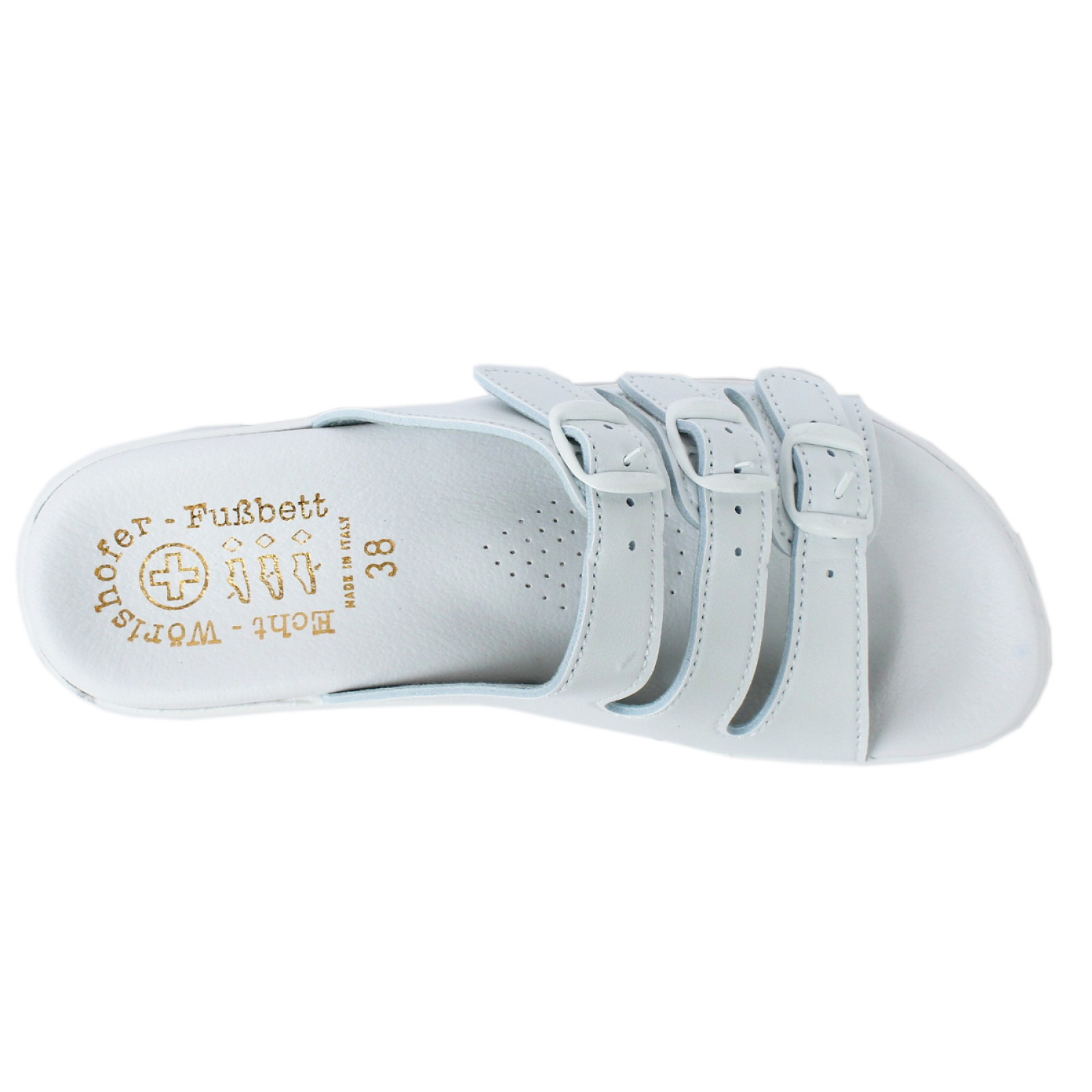 Wörishofer talpbéléssel készült női papucs.  Anatómiai kialakítású párnázott talpszerkezete maximális kényelmet biztosít a lábnak. Három csatos pántjának köszönhetően a papucs bősége mindenhol tökéletesen a lábra igazítható.