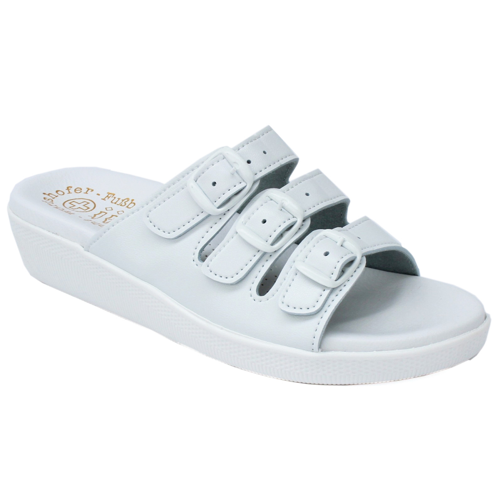 Saniflex női fehér papucs 3 csatos pánttal Wörishofer talpbéléssel 1331.11